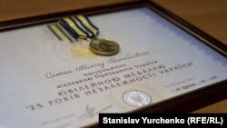 Министр информационной политики Украины Юрий Стець в понедельник 10 октября передал в редакцию Радiо Свобода юбилейную медаль «25 лет независимости Украины», которой украинский президент Петр Порошенко наградил крымского журналиста, автора Радiо Свобода и Крым.Реалии Николая Семену.