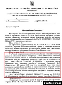 В сентябре представители Минэкологии Украины обращались к ЧАО «Юкрейниан кемикал продактс» с просьбой предоставить информацию о производственной деятельности ее филиала в Армянске, внештатных ситуациях и выбросах загрязняющих веществ, начиная с 20 августа. Но в компании заявили «об отсутствии возможности предоставления соответствующей информации», сообщает замминистра экологии и природных ресурсов Украины Виктор Вакараш.