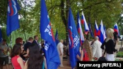 «Мэр» Симферополя Виктор Агеев в своей речи, отдав дань памяти барду, поблагодарил всех меценатов, а кроме того, возглавляемую им партию «Единая Россия».