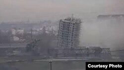 «В результате обрушились только нижние пять этажей, здание осело и наклонилось. Пыль накрыла район мыса Хрустальный. В народе высотку уже прозвали севастопольской Пизанской башней», – пишет издание.