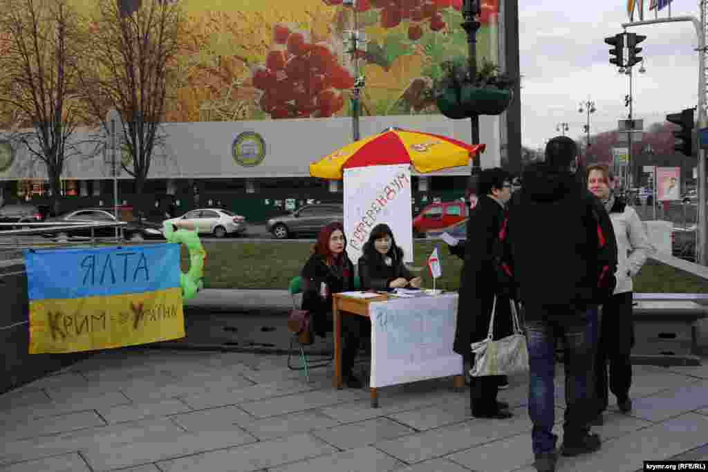 На Майдане Независимости показали, как походил референдум в Крыму год назад.
