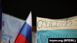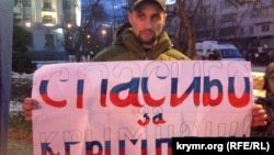 «Спасибо за Крымнаш», – демонстрирует плакат мужчина.
