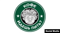 А потом карикатура российского карикатуриста Сергея Елкина благодаря стараниям украинских фотошоперов превратилась в вот такой логотип кафе.