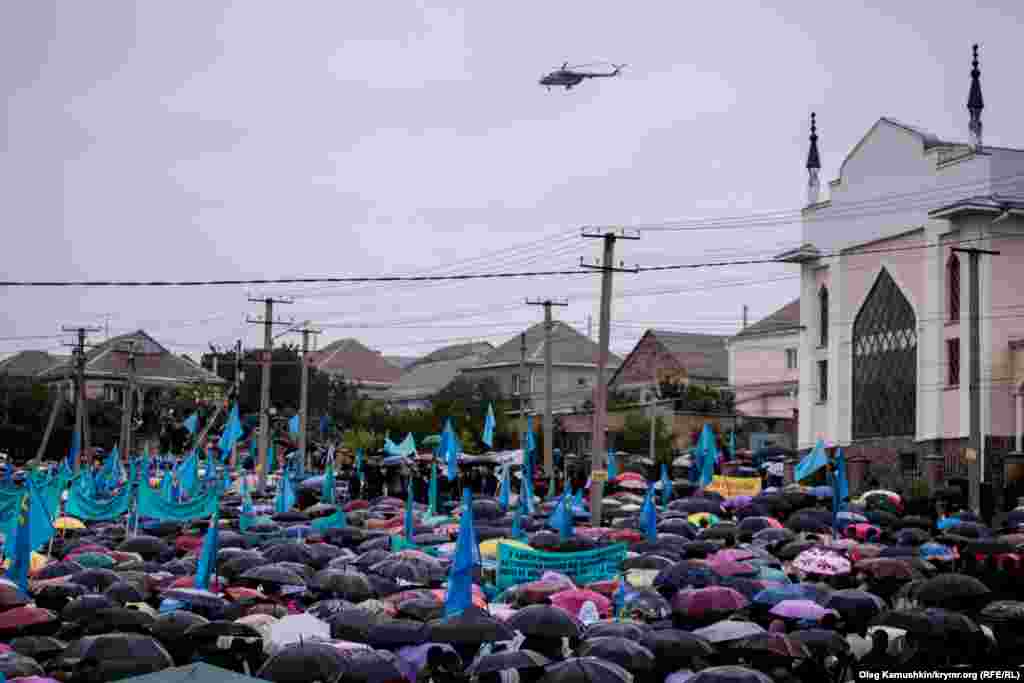 Крымские татары провели Общекрымский молебен (дуа) по погибшим в депортации и митинг крымских татар возле мечети в поселке Ак-Мечеть на окраине Симферополя.