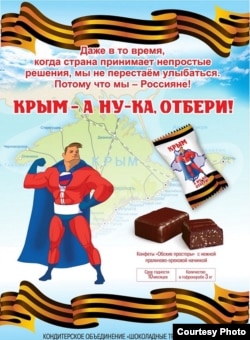 Особой популярности у российских сладкоежек не обрели и конфеты «Крым, а ну-ка отбери!». Год назад на волне крымских событий Новосибирская компания переобернула свои конфеты «Обские просторы» в новые фантики. На них – почему-то супермен с триколором на груди, окаймленный георгиевской ленточкой. Пользователи соцсетей окрестили его Russiaman’ом и Капитаном-Крымом. По признанию руководства кондитерской компании, патриотические конфеты продаются не лучше других и не смогли занять даже средних позиций.