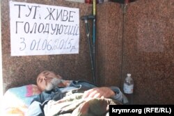А пока же протест крымского татарина в центре украинской столицы продолжается. Вместо подушки у него небольшой пакет с наспех собранными вещами. В папке с документами – портрет Ганди, в обессиленных от голода руках – миниатюрный портрет Тараса Шевченко, который он называет оберегом, и сине-желтый флаг с надписью «Бахчисарай».