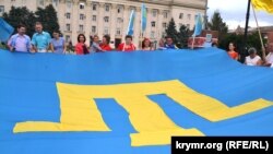 «Этот флаг с изображением золотой тамги на голубом фоне, что символизирует свободу и благородство, был принят на первом Курултае крымскотатарского народа в 1917 году. При смешении синий и желтый цвета образуют зеленый – цвет жизни. Очень символично, что эти же два цвета присутствуют и на украинском флаге. Значит, у наших предков были сходные представления о свободе и благородстве. Сейчас наш флаг – символ борьбы крымскотатрского народа за свои права», – сказал Ибрагим Сулейманов.