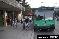 Притормозили у Ялтинского автовокзала. Очереди на троллейбус нет.