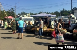На прилавках по-прежнему можно встретить товары с материковой Украины – преимущественно крупы и овощи. Посетители, которых, несмотря на выходной день, на ярмарке не так много, интересуются происхождением продуктов.