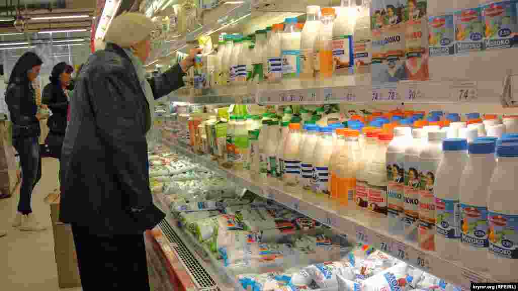Молочные продукты уже полностью российские и крымские. Цены так же незаметно ползут, хотя бы на рубль в месяц.