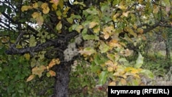 Как вы думаете, что это? Да-да, это не дикий кустарник, не муравейники и не копны сена, это трех-четырехметровые старые яблони, растущие вдоль севастопольской трассы.