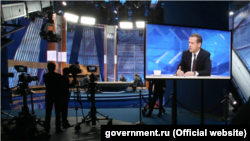 Премьер-министр Дмитрий Медведев подвел итоги года в разговоре с журналистами пяти российских телеканалов – "Первого","России-1", НТВ, "Дождя" и РБК-ТВ.