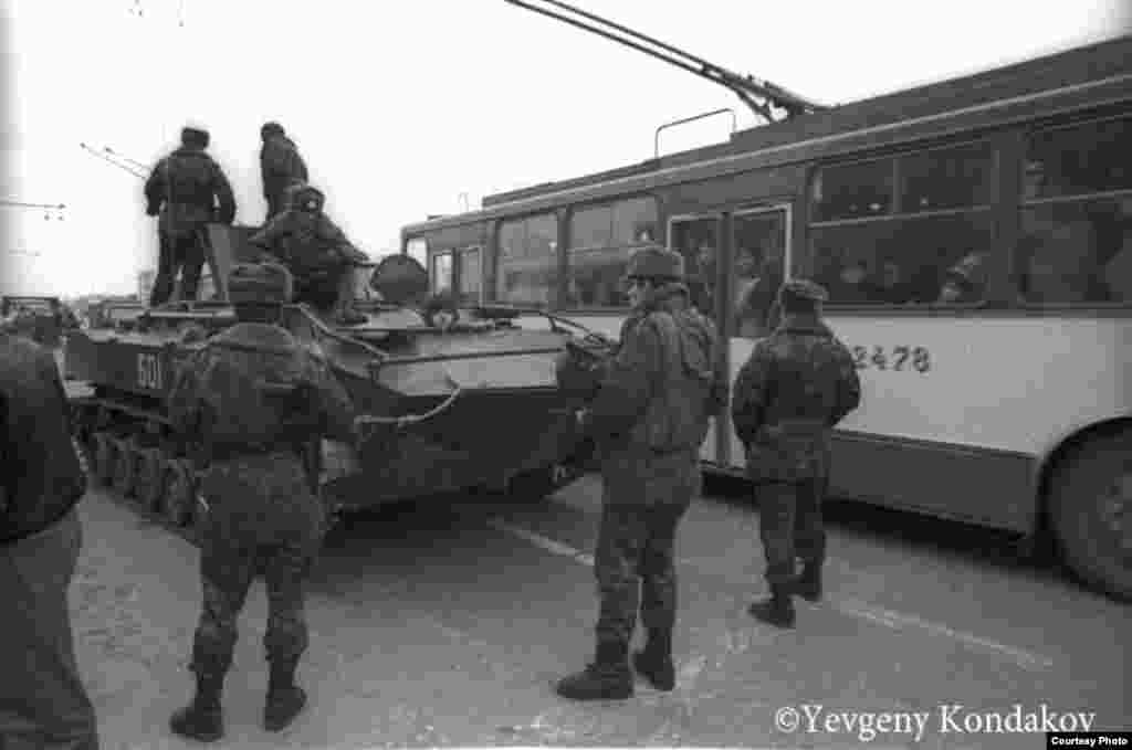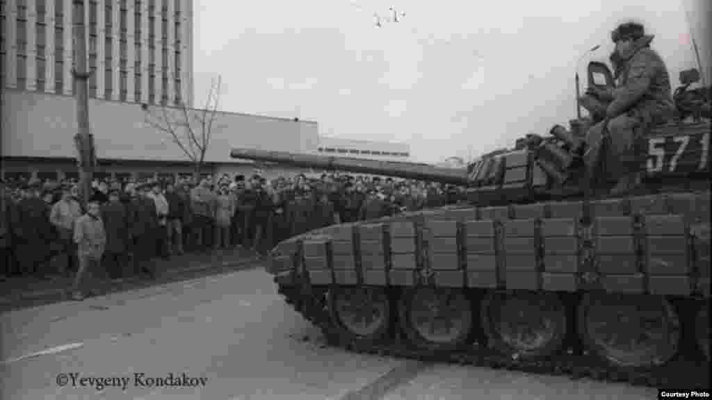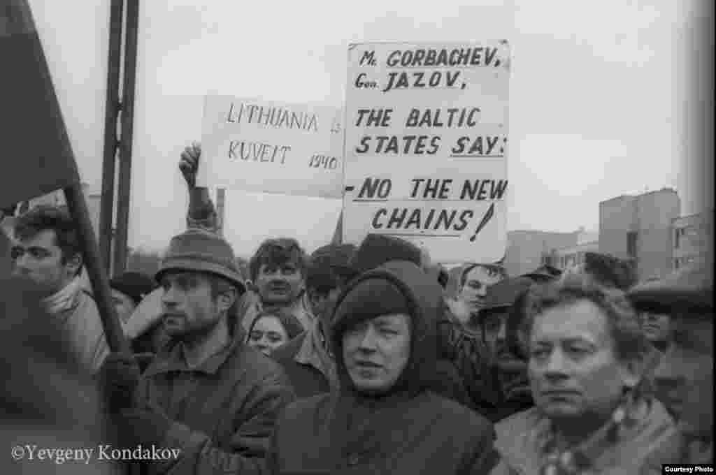 В 1990-е годы фотограф Евгений Кондаков работал в «Московских новостях» Егора Яковлева. В первую самостоятельную командировку Кондакова отправили в январе 1991 года в Вильнюс. Так он и оказался в самом центре событий в литовской столице. Тысячи людей вышли тогда на улицы Вильнюса поддержать решение парламента о независимости Литвы. В воскресенье 13 января в центр Вильнюса вошли советские танки...