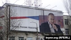 Эту агитку с испытывающим, по всей видимости, жуткую неловкость президентом, хорошо знают все крымчане. Только по дороге от Симферополя до Севастополя (меньше 80 километров) подобных билбордов то ли шестнадцать, то ли семнадцать штук.