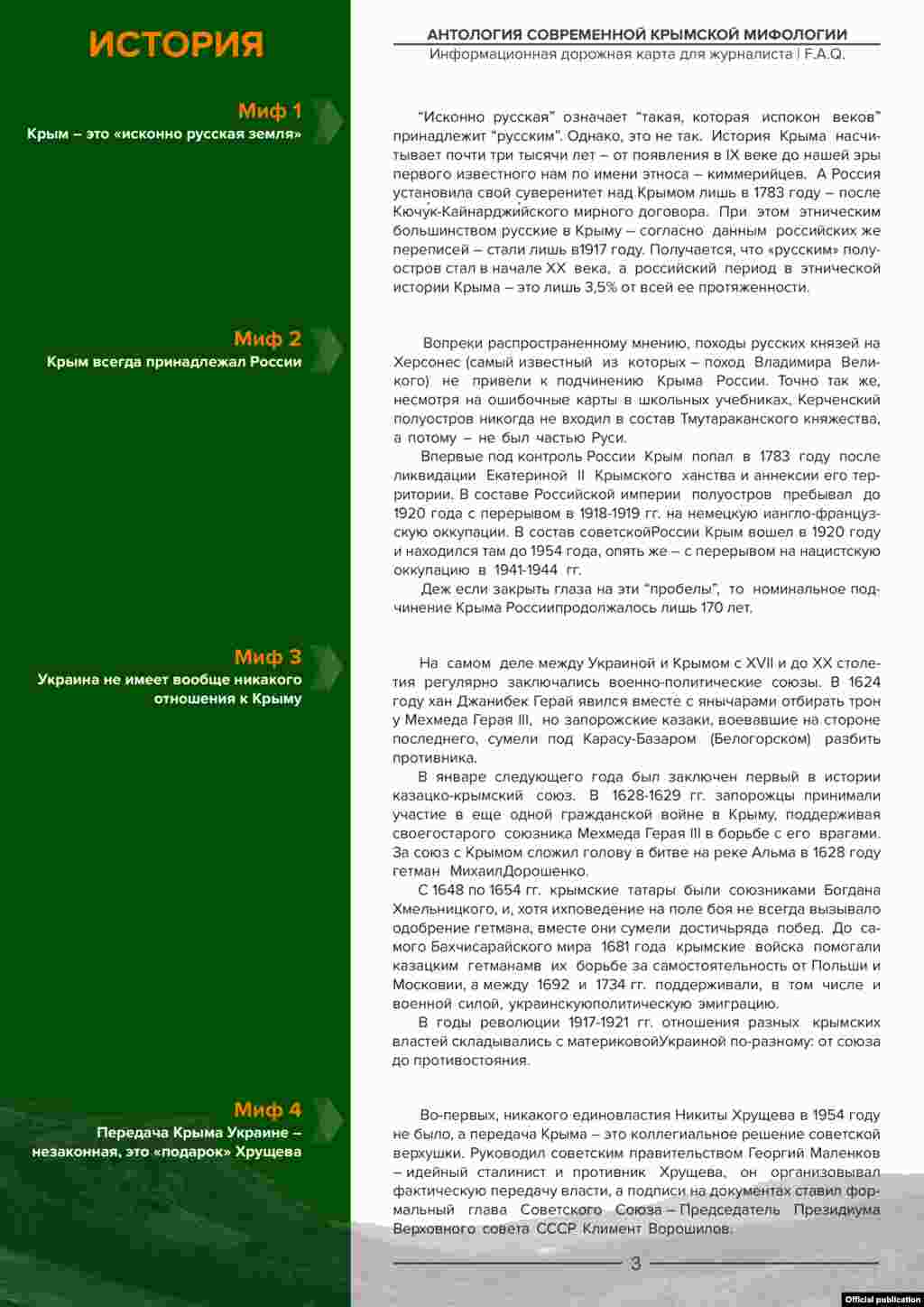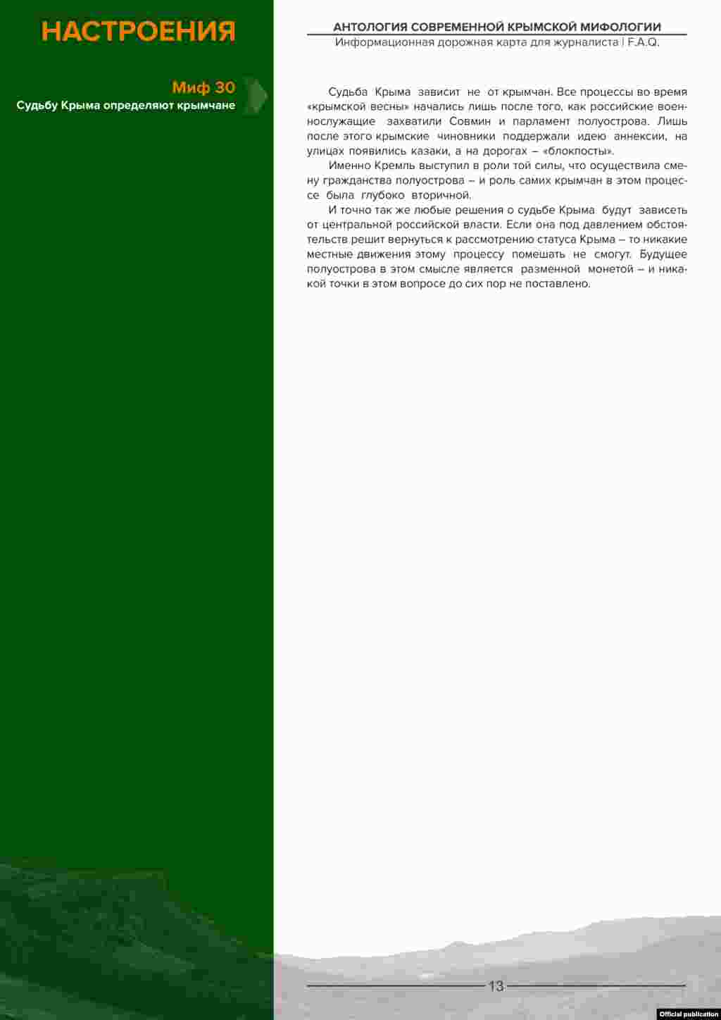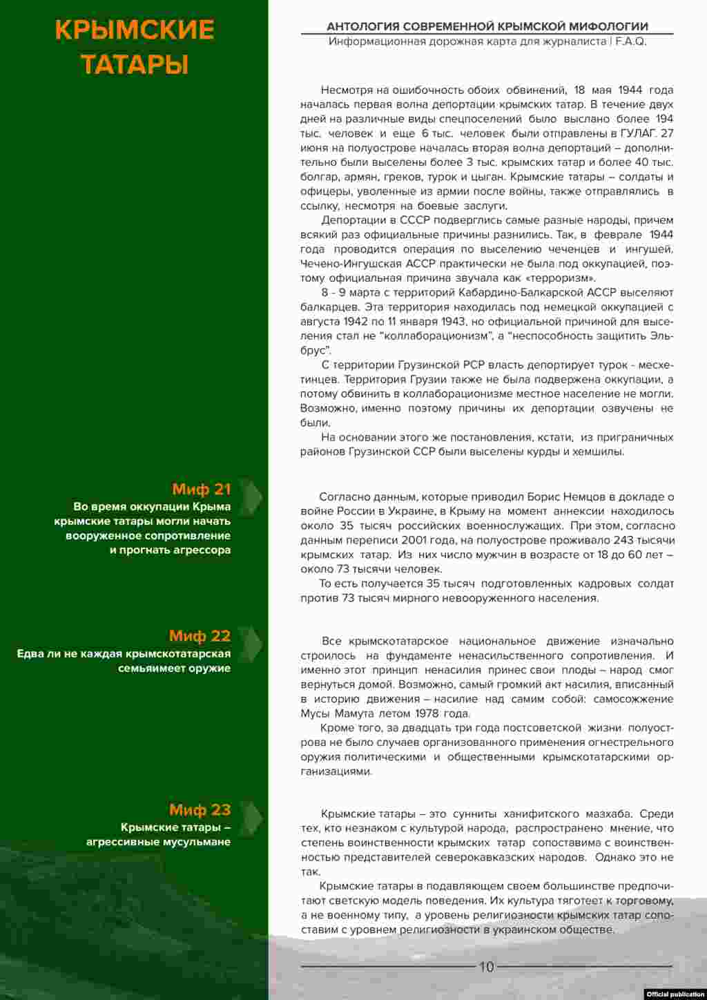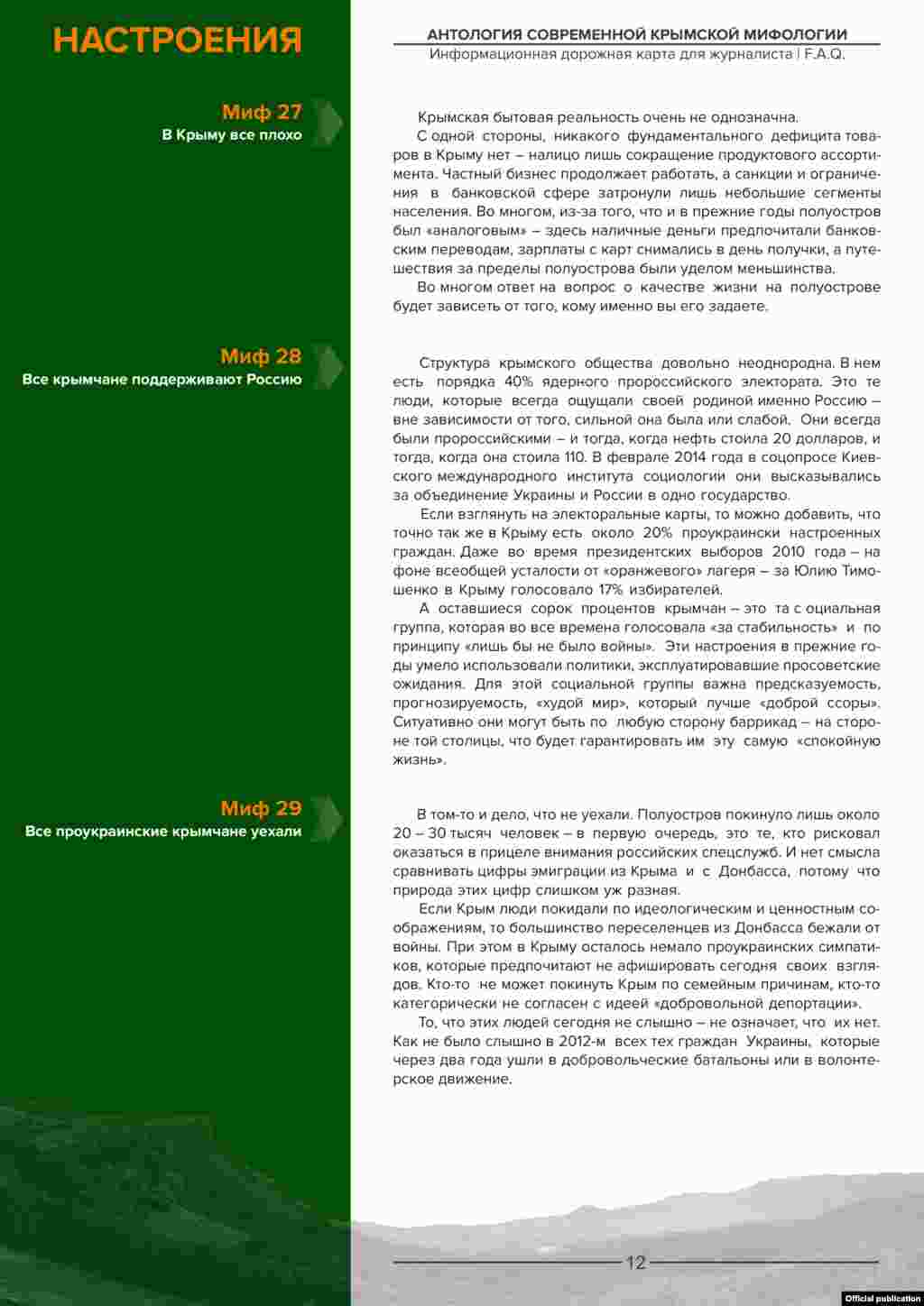 Так уж случилось, что общественное сознание живет стереотипами, но это не значит, что эти стереотипы обязаны быть ложными. Мы собрали тридцать самых распространенных заблуждений о Крыме. Это мифы о крымчанах и аннексии, крымских татарах и межнациональных отношениях, прошлом и настоящем. Это тот самый «информационный прожиточный минимум», без которого нельзя понять полуостров. А понимать его крайне важно.