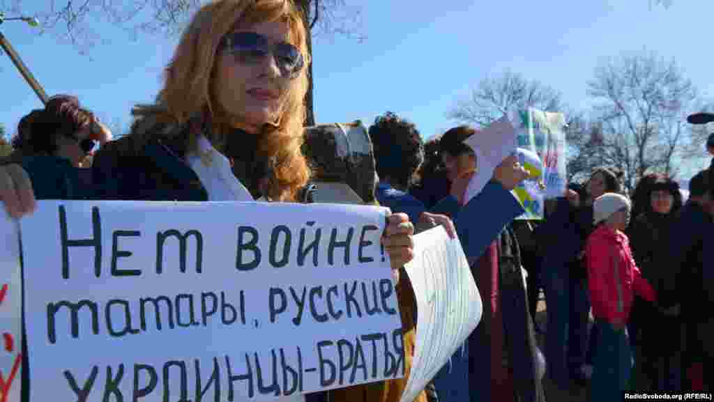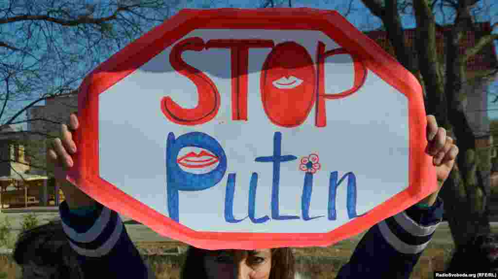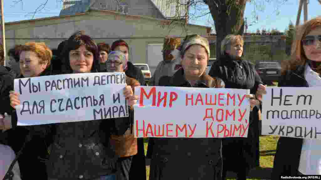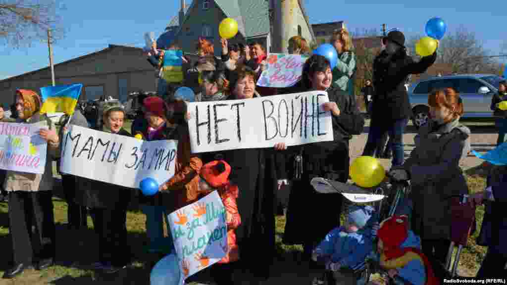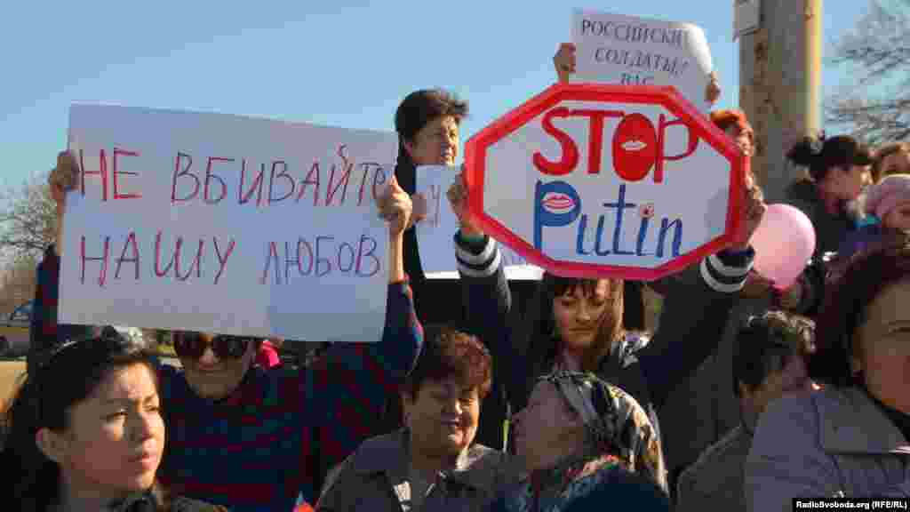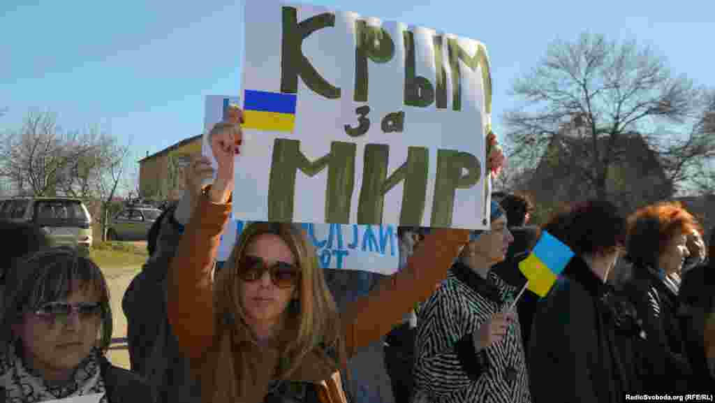 Ко второй годовщине российской аннексии украинского полуострова Крым.Реалии публикуют архивные фотографии, на которых видно, как проходила оккупация Крыма и как его жители ей сопротивлялись. 3 марта 2014 года несколько сотен крымских женщин провели на выезде из Симферополя акцию за мир и против российского вторжения в Крым. Они выстроились вдоль автотрассы с украинскими флажками, желтыми и голубыми шариками и плакатами «Крым - это Украина», «Любить, а не воевать», «Стоп Путин!», «Мы растим детей для счастья и мира», «Крымские татары, русские , Украинцы за мир »,« Верните нам мир! »и другие. Участники мероприятия говорили, что выступают за территориальную целостность Украины и против российской агрессии.