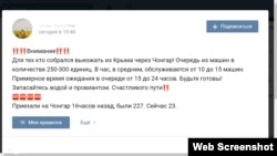 Об обстановке на КПП «Чонгар». Он, напомним, пока единственный из трех пунктов пропуска, где еще осуществляется движение в обе стороны. Однако из-за тщательного досмотра автомобилей российскими правоохранителями на КПП «Перекоп» очереди движутся крайне медленно. Время ожидания бьет рекорды вчерашнего дня, пишут пользователи соцсетей. Всем кто едет, рекомендуют запасаться водой и едой.