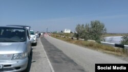 Очереди в «буферной зоне» между пунктами пропуска «Перекоп» и «Чонгар». Те, кому удалось выехать из Крыма. Фото из соцсетей.