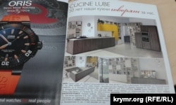 Крымскую рекламу в издании случайно заметили журналисты Крым.Реалии, которые на днях летели самолетом МАУ. Изучением журнала они занялись, чтобы скоротать время в полете. В итоге оказалось, что не зря. Вместе с многочисленной рекламой швейцарских часов, элитных автомобилей и европейских курортов журнал продвигает товары, которые произведены либо продаются в аннексированном Крыму. Таких объявлений мы насчитали три.