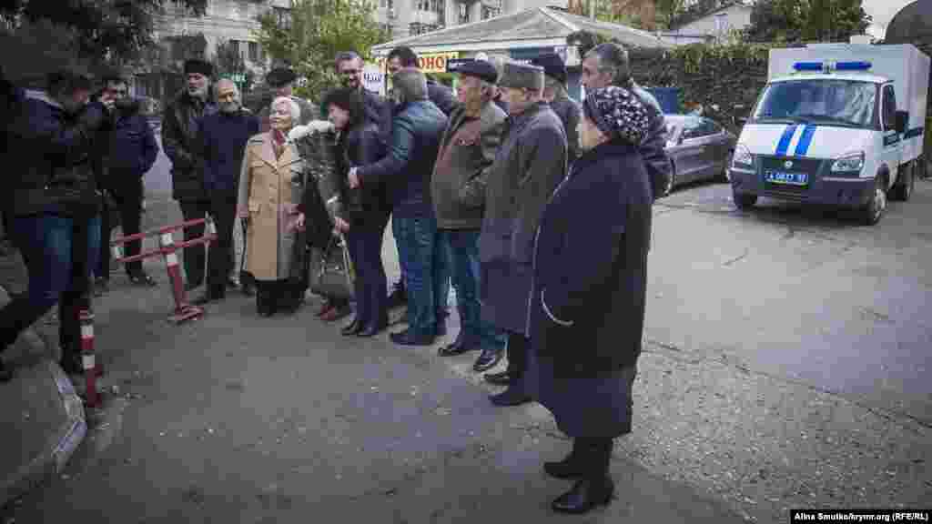 В Центральном районном суде Симферополя 17 октября прошло очередное судебное заседание по «делу 26-го февраля». У дверей суда Алие, мать одного из фигурантов дела Мустафы Дегерменджи, провела свой 51-й день рождения. Друзья и родственники подсудимых пришли поздравить и поддержать Алие.