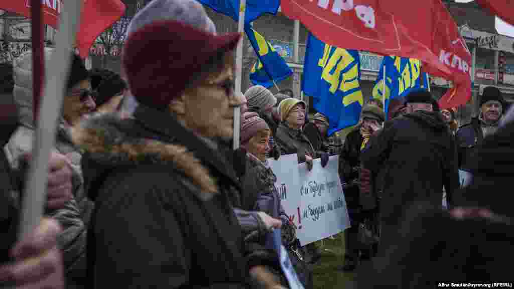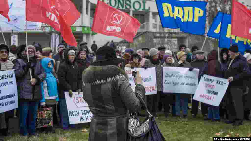 В Евпатории 10 декабря состоялся митинг против повышения тарифов ЖКХ и сбора взносов на капитальный ремонт многоэтажных домов. Организаторами выступили евпаторийские отделения российских партий КПРФ, «Родина», «Справедливость», а также «самооборона Крыма» (МРОО «ПУСК»).