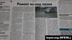 «Крымская правда» в материале «Ремонт из-под палки» рассказывает о наболевшей теме ремонта дорог и улиц в Крыму в течение последних двух лет. По данным издания, эксперты проекта «Оценим качество дорог» на днях приехали в Крым – проверить, движется ли ремонт. Результаты годовой деятельности властей они сочли недостаточными. В качестве примера газета приводит ситуацию на улице Промышленной в Симферополе. По центру проезжей части – три огромных ямы, доверху наполненные водой от дождей и стаявшего снега. «Здесь, когда лужи и лед, молодежь постоянно бьет машины, – рассказывает местная жительница Вера Михайловна, окна которой выходят прямо на аварийный участок дороги. – И ведь знают, что ямы, а все равно летят».
