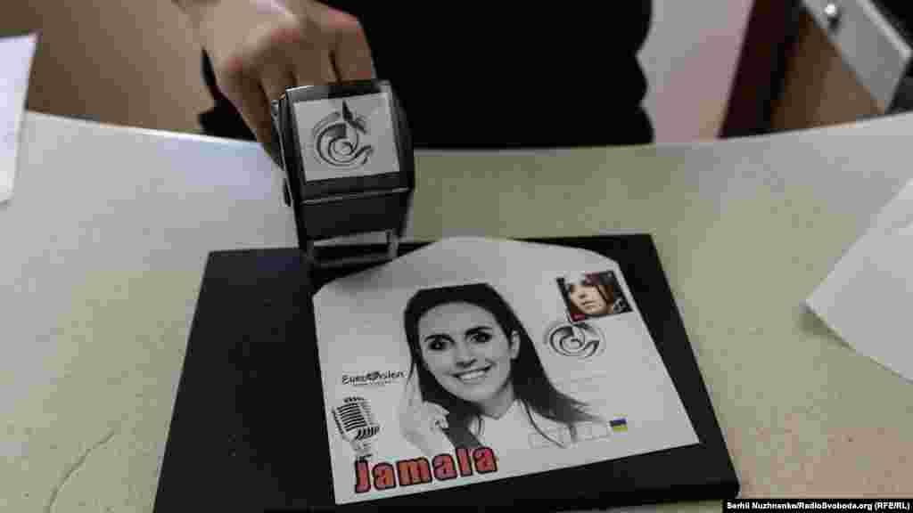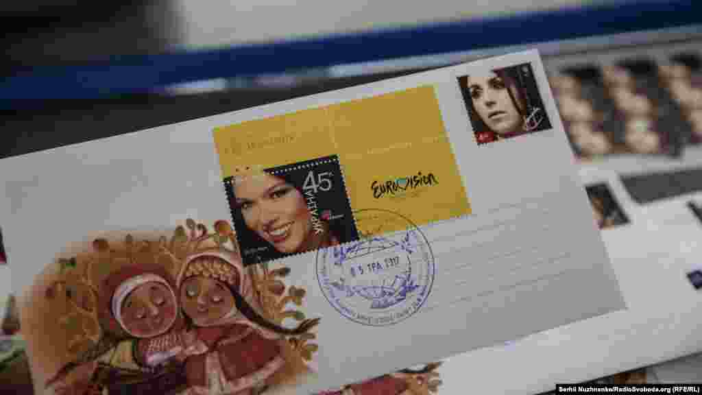 В Киеве 5 мая презентовали художественный конверт и марку с изображением певицы Джамалы. В главном операционном зале киевского отделения №1 Укрпочты провели церемонию специального почтового гашения марок . «Укрпошта» выпустила тематические марки в преддверии международного песенного конкурса «Евровидение», который пройдет в Киеве во второй раз благодаря победе Джамалы.