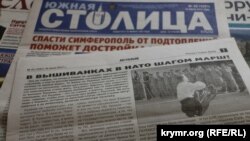 «Южная столица» в статье «В вышиванках в НАТО шагом марш!» комментирует решение Верховной Рады Украины поддержать закон, который вносит коррективы во внешнеполитический курс Украины и ставит целью вступление страны в НАТО. «Это была настоящая перемога! ‒ иронизирует автор. ‒ А один из депутатов, выступая с трибуны в камуфляжной форме, так, как ему кажется, он выглядит более устрашающе, пообещал всем тем, кто не будет голосовать, ночь длинных ножей. И сейчас все те, кто взял в руки оружие, уже гладят себе новенькие вышиванки, чтобы отличаться от войск НАТО, ведь воевать должны эти самые мирные войска, а они, как принимающая сторона, будут командовать, да сало с русской водкой пить».