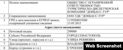 Такие транспортные услуги, в частности, предоставляет ООО Туристическо-диспетчерская компания «Донбасс-Тур», расположенное в оккупированной Макеевке. Как указано на сайте фирмы, «Донбасс-тур» предлагает поездки по регионам России, а также в Крым через паромную переправу. На выбор представлены шесть городов полуострова: Керчь, Феодосия, Симферополь, Ялта, Севастополь и Евпатория. Стоимость билета – от 2 тысяч рублей (860 гривен – КР).