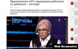 Сайт российского канала «Звезда» опубликовал новость с заголовком: «Практически 45% украинцев работают за рубежом ‒ эксперт». Такую цифру в эфире телеканала озвучила Ольга Ковитиди ‒ российский сенатор от аннексированного Крыма.