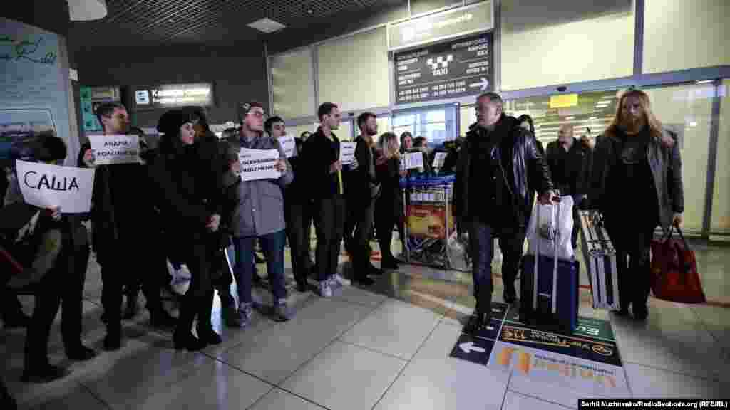 В аэропорту «Киев» в столице Украины 26 ноября состоялась международная акция «Напрасное ожидание», посвященная дню рождения заключенного в России крымского активиста Александра Кольченко.