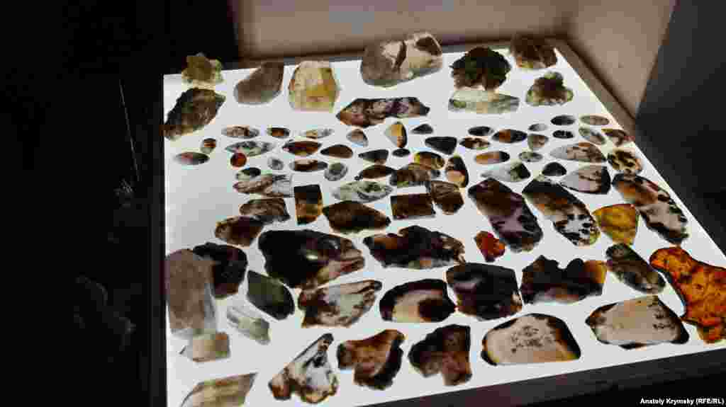 Среди этих необработанных камней и минералов есть и крымские