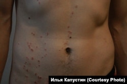 "Множественные ссадины округлой и овальной формы". Фотографии следов электрошокера на теле Ильи Капустина и фрагмент акта судебно-медицинской экспертизы: