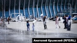 Здание самого аэропорта похоже на застывшую морскую волну. Российские строители гордятся тем, что это якобы сложнейший, оригинальный и очень дорогой проект. Он стоил примерно полмиллиарда долларов. Владимира Путина лично убеждали: здесь многие детали уникальны. Проектировщики похвастались, мол, здесь восемь тысяч индивидуальных стеклопакетов, дважды один размер не повторяется, из-за формы волны.