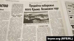 «Крымская правда» в статье под заголовком «Продается побережье всего Крыма. Возможен торг» акцентирует внимание на том, что на полуострове «продолжают распродавать лакомые кусочки у моря».