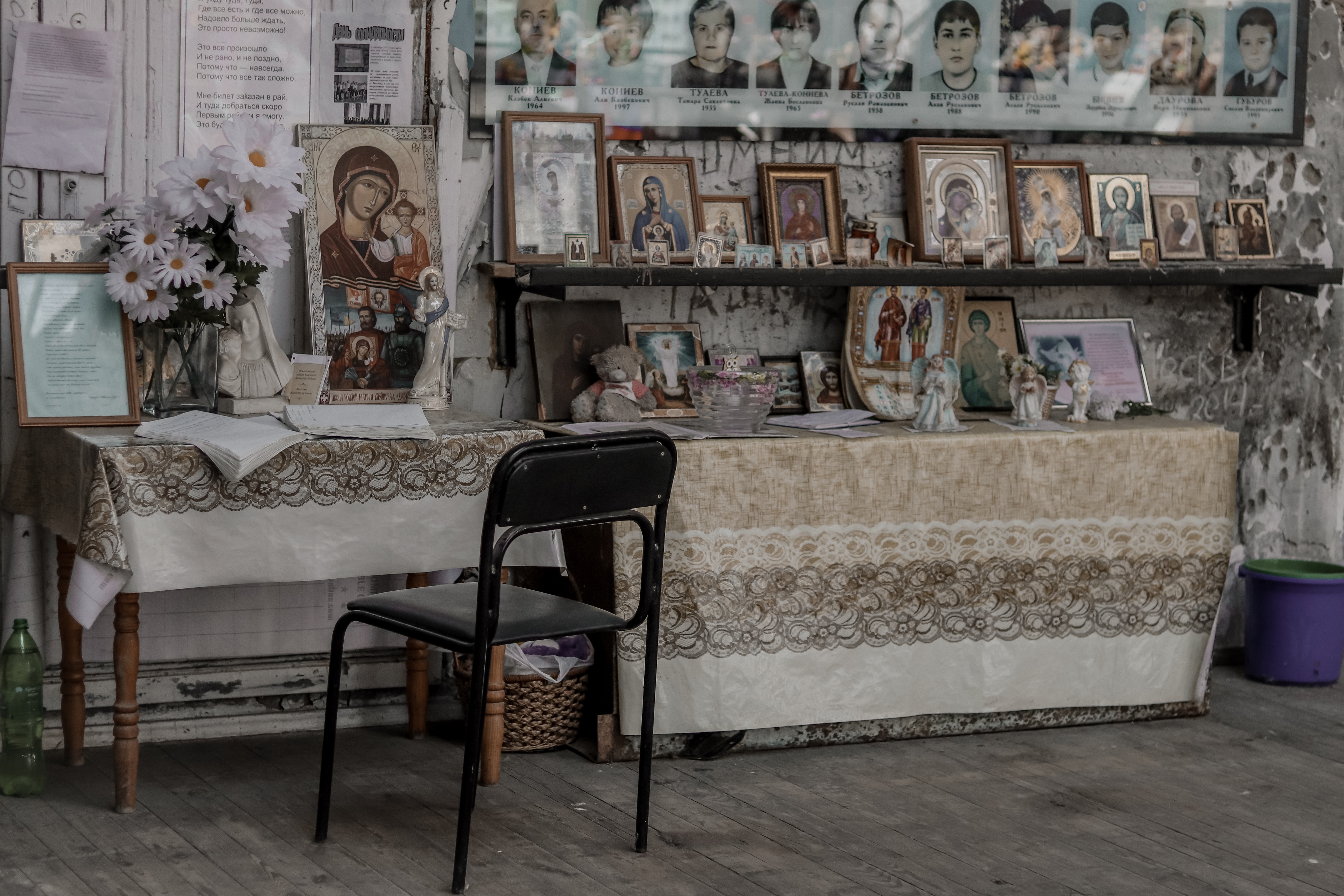 Иконы и портреты погибших в бывшей школе №1