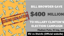 Сайт EU vs Disinfo, развенчивающий дезинформацию России, назвал числом недели сумму в 400 миллионов долларов. Эти деньги, по словам президента России Владимира Путина, якобы пожертвовал известный финансист Уильям Браудер в пользу предвыборной кампании кандидатки в президенты США от демократов Хиллари Клинтон.