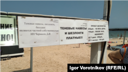 Самый первый пляж при въезде в село со стороны Щелкино оказался закрытым, о чем сообщает установленная табличка.