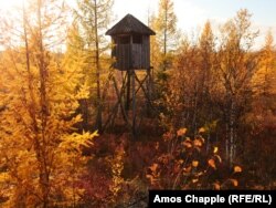 Некоторые из строений сохранились, как, например, этот деревянный дом. Когда-то в нем, вероятно, жила охрана лагеря, а сегодня его поддерживают и используют охотники.