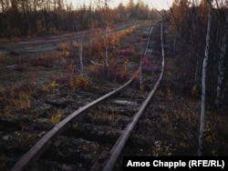 Рельс, отлитый на Демидовских заводах незадолго до того, как к власти в 1917 году пришли большевики. Большую часть использованных на стройке рельсов позже собрали и вывезли: ценная демидовская сталь пошла в переплавку на "Норильском никеле".