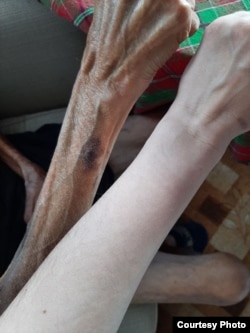 Снова увидеть своего дядю, который был уверен, что его родные погибли при бомбежке театра, Мария Кутнякова смогла только через три месяца. Она опубликовала в Фейсбуке фотографию его руки и ноги, которые больше напоминают тело узника Освенцима: все это время пожилой человек был вынужден жить впроголодь, лишь однажды получив скромный паек от оккупировавших Мариуполь российских военных. За время войны Павел Глущенко потерял 15 килограмм.