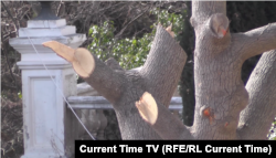 «Вырубка уже идет полным ходом: самосвалы вывозят с территории парка распиленные ливанские кедры, магнолии, можжевельники. Сейчас, когда мы записываем это обращение, под тяжелой техникой погибает очередное дерево и строится очередной метр забора», ‒ говорят жители Фороса в обращении и демонстрируют на видео, как деревья сносят даже ночью.