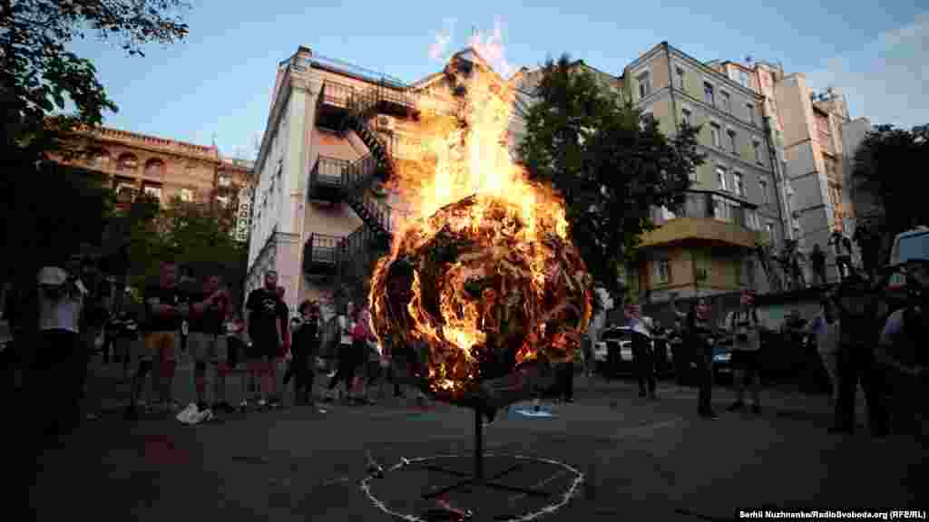 Сожжение ваты. В Киеве подожгли огромный шар в поддержку политзаключенных (фоторепортаж)