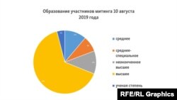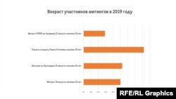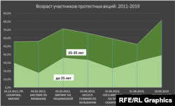 – 10 августа 2019 года 24% участников митинга на Сахарова были в возрасте до 25 лет включительно, а митинг 24 декабря 2011-го на проспекте Сахарова привлек даже чуть большее число участников того же возраста – порядка 30%. Подростков – то есть молодых людей до 18 лет включительно – в 2011 году было 5%, а в 2019-м – 8% на Сахарова и незначительно меньше – на несогласованном шествии по бульварам 31 августа. Как мы видим, количество молодых людей константно – примерно четверть.
