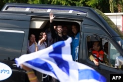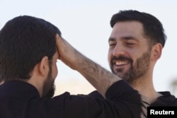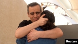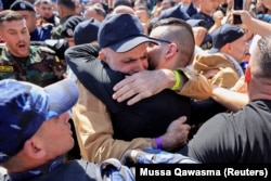 Один из освобожденных израильских заложников Омри Миран обнимает своего отца. Израиль, 13 октября 2025 года. Фото:Reuters
