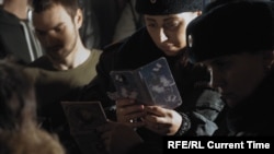 Полиция пытается придраться к директору группы с вопросом "Есть ли договор с Российским авторским обществом на воспроизведение песен". Видно, что главная цель спецслужб – всеми способами признать выступление незаконным.