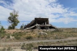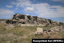 Руины городка «Г» (условное название городка в советское время) у горы Дегелен. В советские годы этот городок, подчинявшийся непосредственно Москве, находился на специальном обеспечении. Некоторые жители окрестных совхозов получали специальное разрешение и покупали здесь продукты питания. В городке быстро находили дефицитные запчасти для техники.