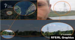 Радио Свобода и "Схемы" геолоцировали это видео (точные координаты): оно снято недалеко от правого берега Днепра в районе поселка Казацкое, а паром направляется в устье канала, который соединяет этот поселок и расположенную на левом берегу Новую Каховку, проходя мимо острова Казацкий.
