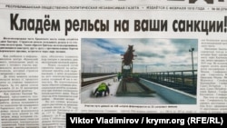«Крымская правда» в статье под заголовком «Кладем рельсы на ваши санкции!» рассказывает о строительстве железнодорожной части Керченского моста. По информации издания, строители начали укладывать рельсы со стороны полуострова. Таким образом бригады железнодорожников, двигающиеся навстречу друг к другу с противоположных берегов Керченского пролива, встретятся через пару месяцев. Путеукладчик зашел на мост с готового участка керченского железнодорожного подхода, который строится синхронно с мостом. До этого момента укладка рельсов велась со стороны таманского берега. За это время успели уложить 22 из 38 километров рельсошпальной решетки. Как пояснил Евгений Чибышев, представитель подрядной организации, ведущей работы, рельсы укладываются по технологии так называемого бархатного пути. Из 25-метровых звеньев формируются участки пути длиной по 440 метров, между которыми ставятся уравнительные стыки для компенсации температурных напряжений. Такая технология позволяет заметно уменьшить шум, обеспечить плавность хода поездов и увеличить срок эксплуатации железной дороги. Билеты на пассажирские поезда в Крым, которые будут курсировать по мосту через Керченский пролив, начнут продавать 9 декабря 2019 года. На полуостров планируют пустить десять маршрутов пассажирских поездов: Москва - Симферополь, Москва - Севастополь, Москва - Евпатория, Москва - Феодосия, Мурманск - Симферополь, Екатеринбург - Симферополь, Санкт-Петербург - Севастополь, Санкт-Петербург - Евпатория, Брянск - Симферополь, Кисловодск - Симферополь.