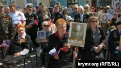 Тут сделаем отступление в скобках: прежние «бессмертные полки» проходили в Крыму тоже по указке сверху. Редко кто найдет портрет деда, погибшего во Второй мировой войне. А для большинства и не деда, а прадеда. И на помощь пришла власть: раздавали портреты чужих. Слышал, в других городах после шествия такие портреты находили в мусорных баках. Но не у нас! Потому что через год же новое шествие, зачем же зря расходовать деньги на агитацию и пропаганду? А потому портреты «чужих» сдавали организаторам митинга.